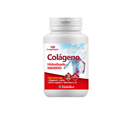 COLÁGENO HIDROLIZADO MARINO + MAGNESIO + CALCIO + SILICIO ORGÁNICO + VITAMINAS C y D — 180 comprimidos (Zentrum)